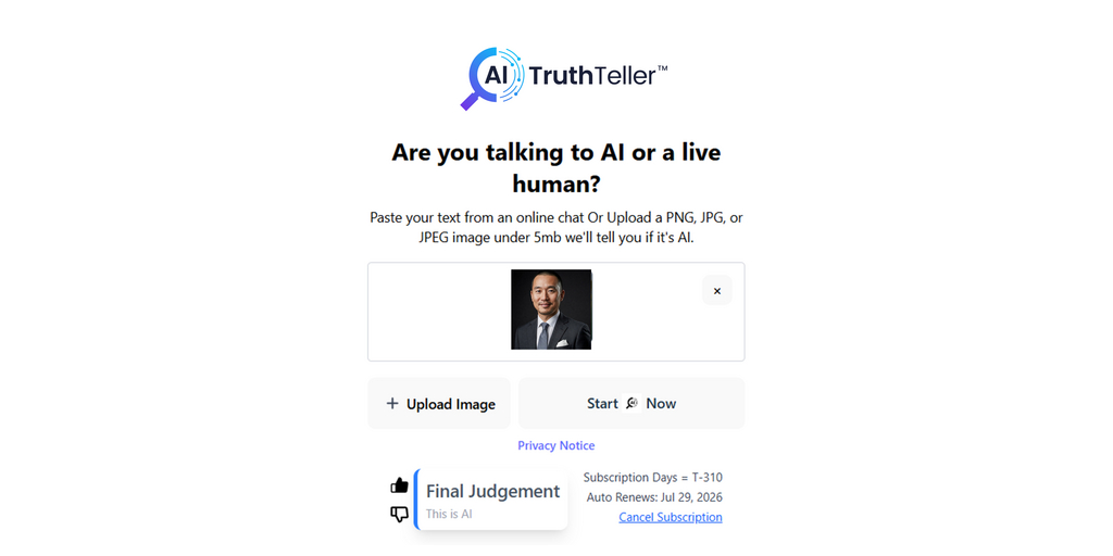 With this upgrade, AI Truth Teller uses multiple large language models with the latest advancements in image and text processing from today’s leading AI companies. “AI detection requires AI and each AI model has unique strengths. We’ve combined the latest models from the largest AI companies in order to deliver a superior user experience,” says, Ian Gilyeat, Founder of the company. “We’re particularly excited about this upgrade because of its many possible uses. Early testing has shown excellent results in detecting fake images in advertising, social settings and in sham stories about athletes and celebrities all across the web. It is used to detect scam text messages, bogus email and deceptive online chats, and by combining detection of AI images with online chats, catfishing is less likely to happen. AI Truth Teller gives the user real tools to assess, detect and protect themselves in digital environments.”